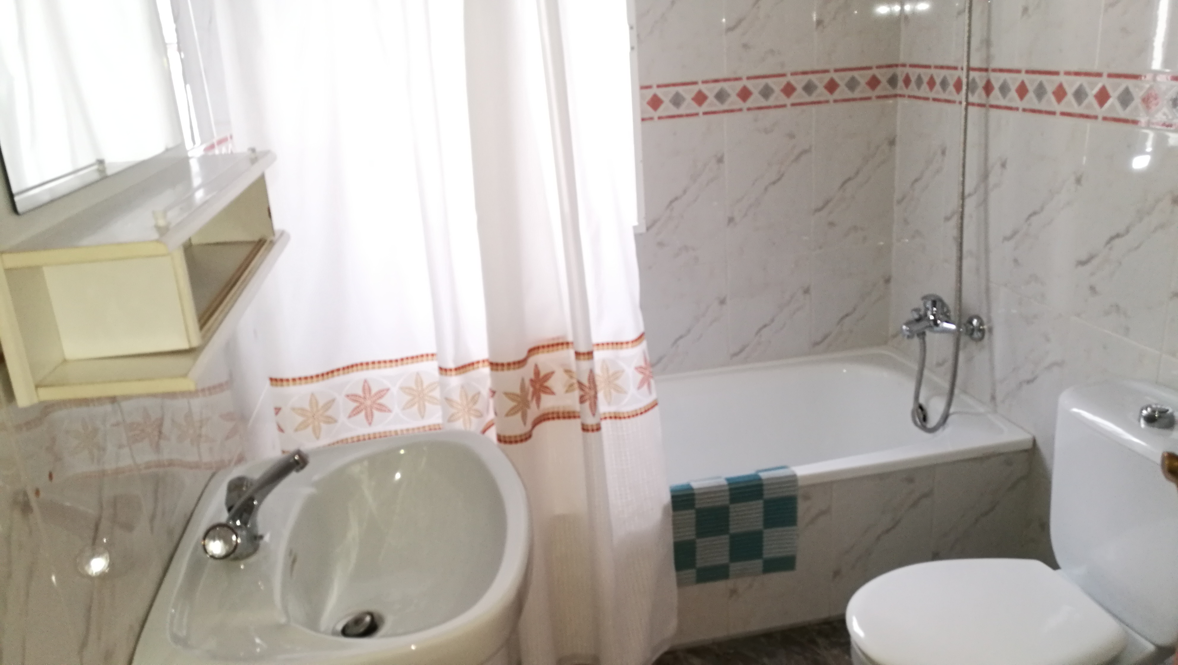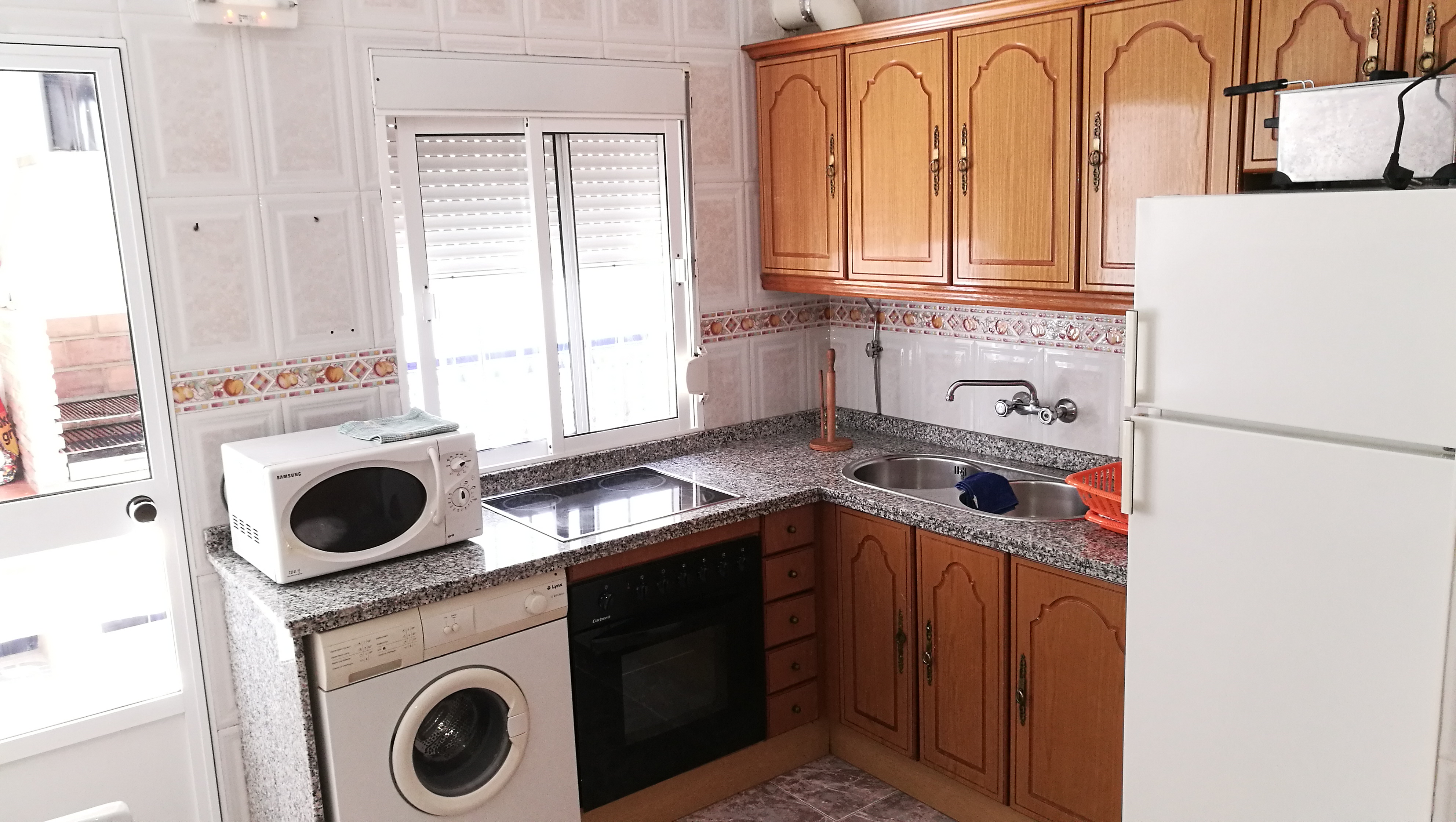 - Cocina con vitrocerámica, lavadora, frigorífico.