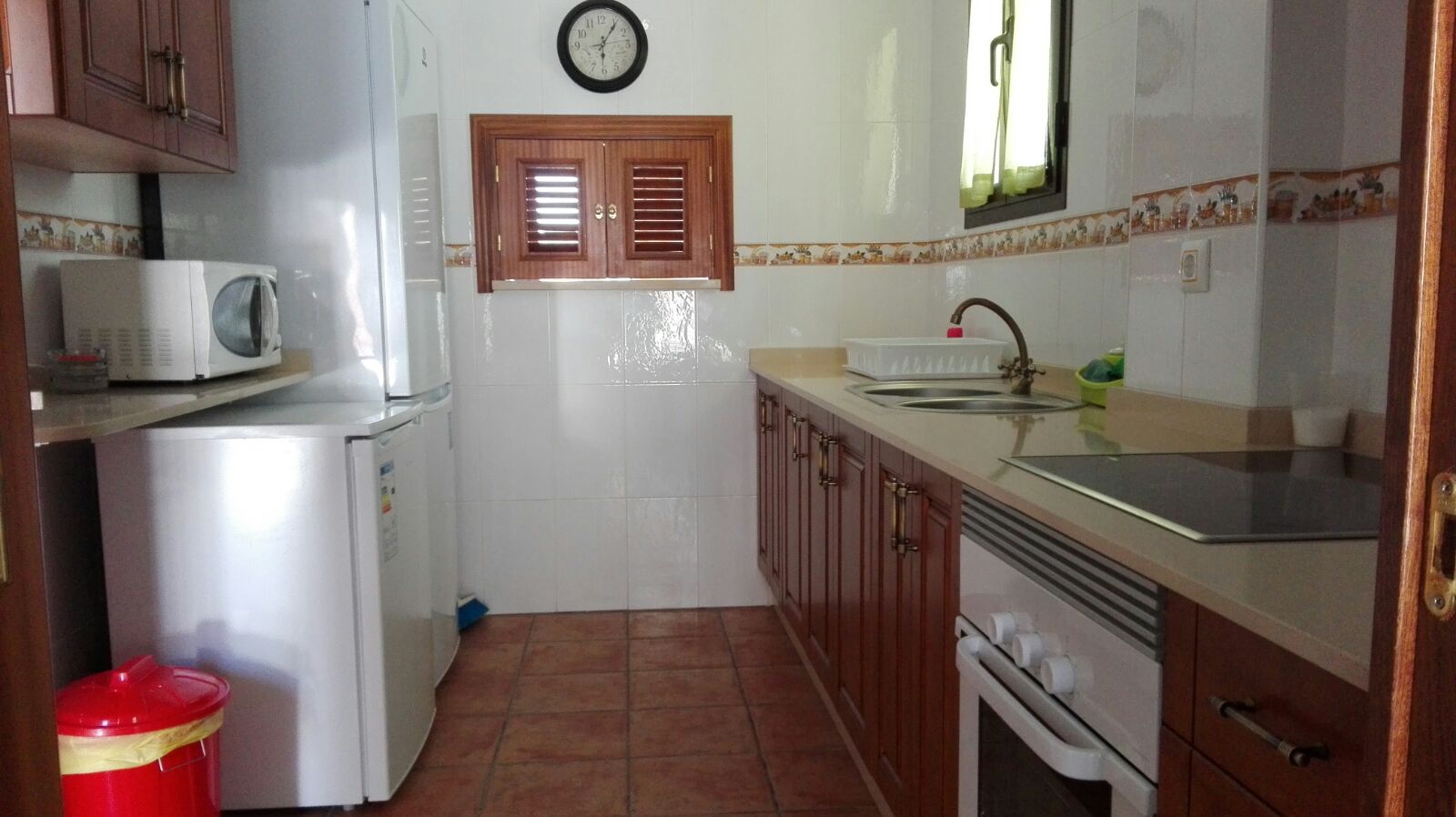 - Cocina con vitrocerámica, lavadora, frigorífico.